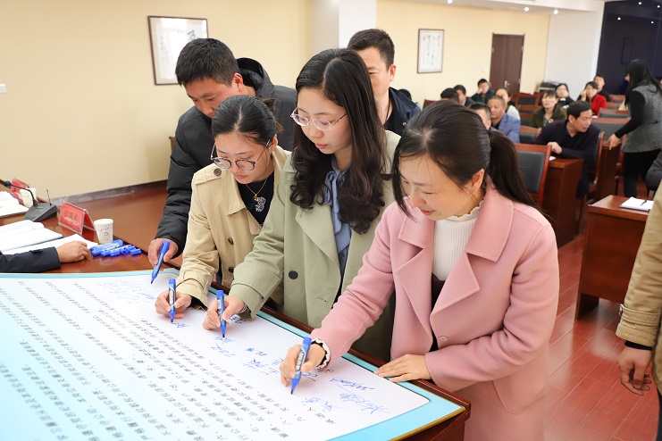 谈话会上,四名新提拔干部代表分别作表态发言并进行集体廉政承诺和集中签名。(西宣)