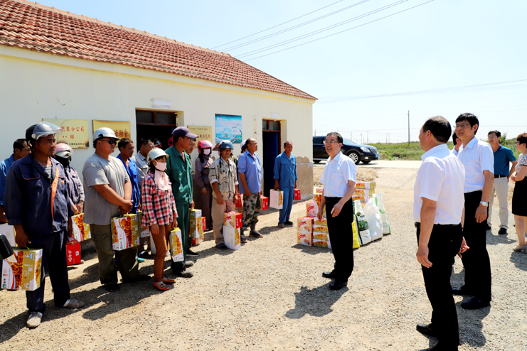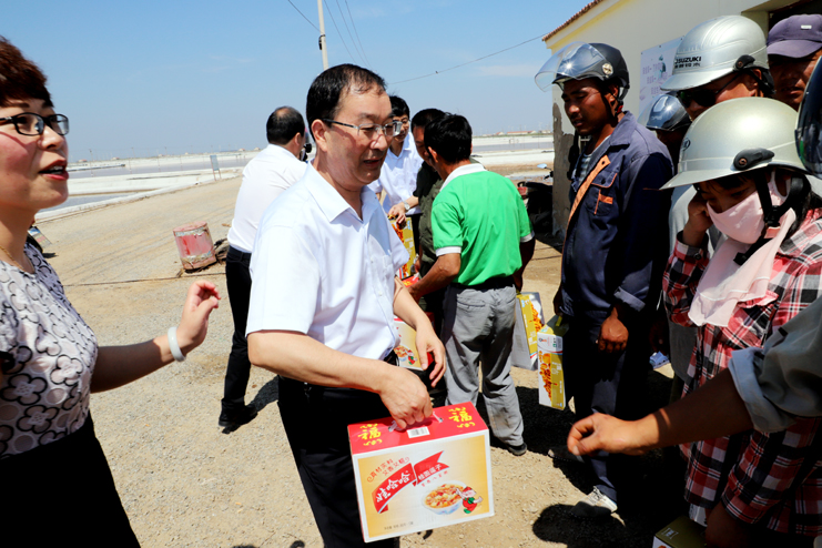 入伏以来,持续高温,为确保一线生产单位工作顺利开展,保证员工身体健康。7月18日上午,安博(中国)官方公司总经理胡建明、副总经理张其海一行深入日晒制盐公司走访慰问一线职工,把绿豆、饮料等慰问品送到他们手中,在炎炎夏季,为一线职工送去安博(中国)官方公司领导的深切关怀与阵阵清凉。