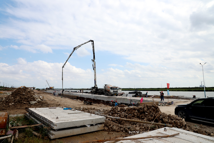 “十一”国庆节长假成为大部分人难得的休闲时光,但在灌西五灌河码头二期工程项目的施工现场,生产作业仍在热火朝天地进行着,建设者们放弃休息,奋战在施工生产一线,抢抓工期,全力推进二期码头项目建设进度。