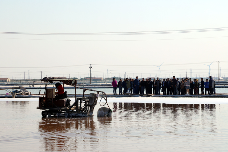 参观团首先参观了日晒制盐公司扒盐现场,在参观过程中,听取了相关情况的介绍,了解了原盐的生产发展演变,参观感受了现代化带卤扒盐生产场景;随后,参观团一行参观了新河制盐的党建室和创新劳模工作室。通过参观,他们一致表示我公司的党建室给他们留下了深刻印象,尤其是发挥劳模创新工作室示范引领作用的做法对他们开展党建工作有较好的启示。(张明建)