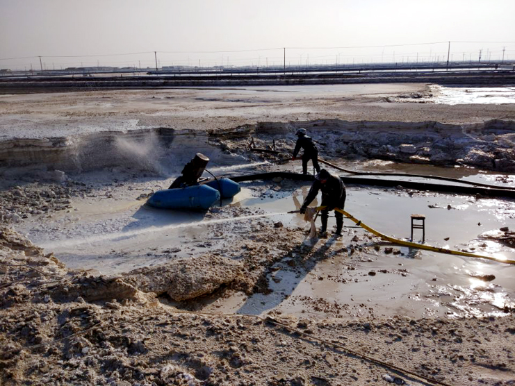 来到埒南制盐分公司6班硫酸钙清理现场,只见水枪里射出的水柱把硫酸钙废渣冲的四处飞溅,伴随机器轰鸣声硫酸钙废液被送出滩外,工友们穿好雨衣,戴好头盔,手握水枪,一站就是3、4个小时,他们两人一组,轮番作业,确保息人不息机。班长胡继华信誓旦旦的说安博网页版要发扬一不怕苦,二不怕累的革命精神,发扬“有条件要上,没有条件创造条件也要上”的大庆精神,宁愿多加班,少睡觉也要按期保证完成硫酸钙清理工作。