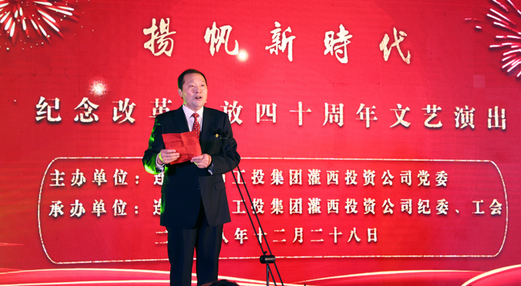 伟大变革,书写壮丽史诗;永志不忘,奋进复兴征程。12月28日,灌西投资公司以“扬帆新时代”为主题的庆祝改革开放40周年文艺汇演在灌云县临港产业管委会报告大厅上演。工投安博(中国)官方公司领导戴鸿鸣、汪群、刘承志等领导与职工群众代表700余人共同欣赏了这台振奋人心的视听盛宴。投资公司党委书记、董事长、总经理李国文作了演出致辞。
