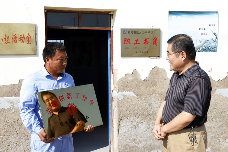 8月22日下午,市总工会副主席陈健一行到工投安博(中国)官方日晒制盐公司,为连云港市劳动模范祝星星“劳模创新工作室”授牌。 陈健一行参观了日晒制盐公司劳模创新工作室,听取劳模创新工作室带头人祝星星介绍工作室成立以来所取得成绩,陈健充分肯定了在劳模创新工作上所做出的贡献,鼓励祝星星发挥好劳模的示范带头作用,以劳模创新工作室为抓手,通过“传、帮、带”、技术创新、技能攻关,打造一流团队,为企业的发展不断夯实人才和技术基础,推动企业高质发展不断做出新的更大贡献。(张明建)