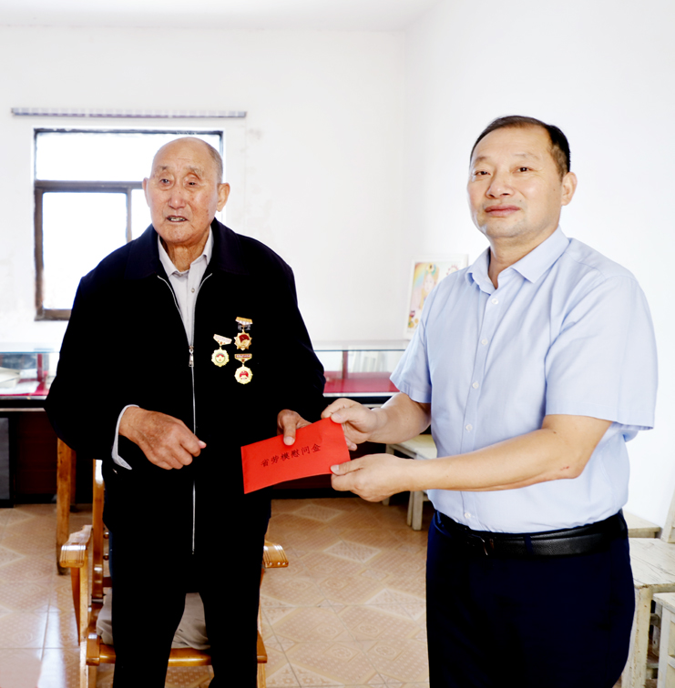 国庆佳节即将到来之际,9月20日,灌西公司党委书记、董事长、总经理李国文、党委副书记、纪委书记、工会主席王宏一行走访慰问省劳模毕德华,为他送去节日祝福。 在走访慰问过程中,公司党委为省劳模送去慰问品和慰问金,并详细询问毕劳模身体和生活情况,并对他为灌西发展作出的贡献表示感谢和敬佩。90高龄的毕老行动不便,李董事长与其紧紧握住双手,亲切交谈,细心询问,了解他家中生活情况,希望他保重身体,安享晚年。(张明建)