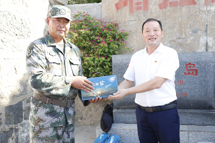 上午9点10分,随着百名人员的陆续登岛,往日宁静的开山岛突然热闹起来,红旗飘舞,歌声飞扬。沿着山梯而上,重走全国“人民楷模”、“最美奋斗者”、优秀共产党员王继才同志生前的巡岛路线,追寻英模足迹;参观“开山岛夫妻哨所事迹展示馆”,瞭望台、生活间和营房,实地感受王继才夫妇在环境异常恶劣的开山岛上,以岛为家、与海为邻,舍家为国、不畏艰险,32年如一日坚守海防事业的奉献精神;在开山岛最高处的国旗广场上,党员们一起观看守岛民兵升国旗,组织开展重温入党誓词仪式,教育引导全体党员不忘初心,牢记使命。