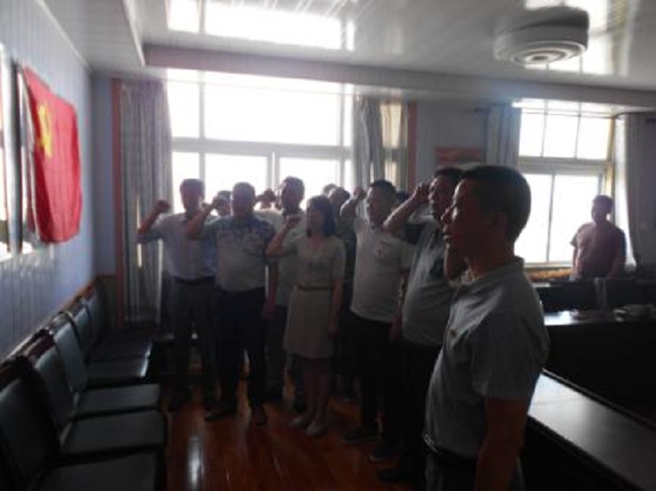 6月21日上午,为迎接中国共产党成立95周年之际,宵洋物流公司党支部在党建室为全体党员过一次政治生日。会上新、老党员进行了交流,老同志谈了自已入党以来在思想上、工作上的一些认识和好的建议,并对新同志提出了更高要求,新党员表态要向老同志看齐,努力学习,勤奋工作,牢固树立全心全意为人民服务的宗旨,最后全体党员胸前戴着党微、高举右拳、面向党旗重温入党誓词。(宵洋葛高平报道)