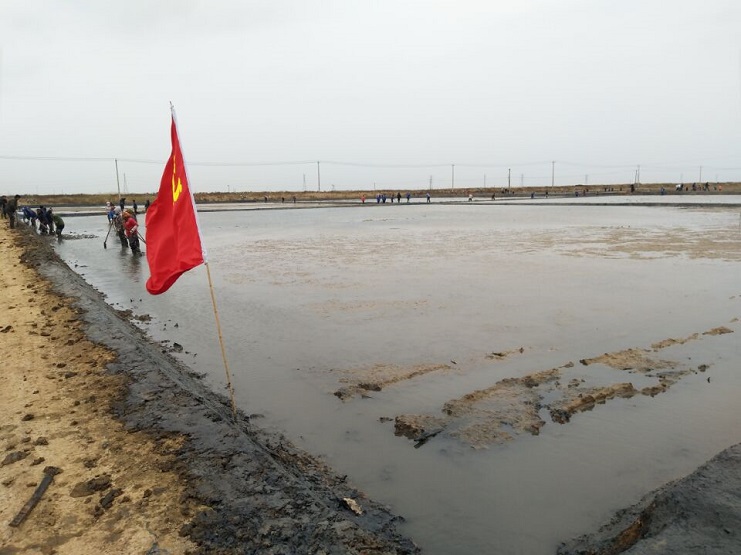近日,埒南制盐分公司组织人员参加海盐基地建设”大会战”埒南制盐分公司领导班子,全体党员及部分员工150余人,在实业公司海盐基地开展义务劳动,修整池埝近3000米.