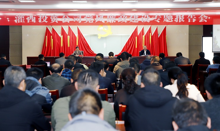 11月17日下午,灌西投资公司邀请安博(中国)官方纪委书记汪群在机关五楼会议室为党员干部作党风廉政建设专题报告。投资公司党委书记、董事长、总经理李国文主持会议,公司领导班子成员、各单位党政负责人、共建单位神特、奥神纪检人员、机关全体管理人员100余人参加会议。