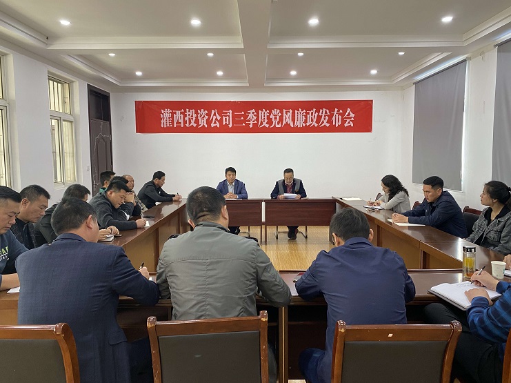 为进一步加强党风廉政建设,推进企务公开制度的落地生根,切实发挥党员干部和职工群众对廉洁风险的监督作用。10月22日,灌西投资公司划分两大片区对三季度党风廉政建设情况进行发布,各单位支部书记、专兼职纪检员及部分职工代表参加会议。
