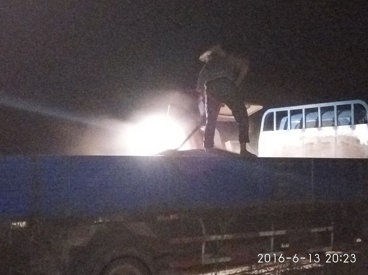 他立即会同农业分公司的全体员工,开赴地头,抢收小麦。联合收割机马力开足,看着一垄垄小麦被收割完,看着一袋袋小麦被装运上车,该公司参加抢收人员仍然忙碌着。天黑了,他们打开车灯和手提电灯,顶着高温、忍受着蚊虫的叮咬,目标只有一个,在雨到来前一定要完成小麦抢收任务。