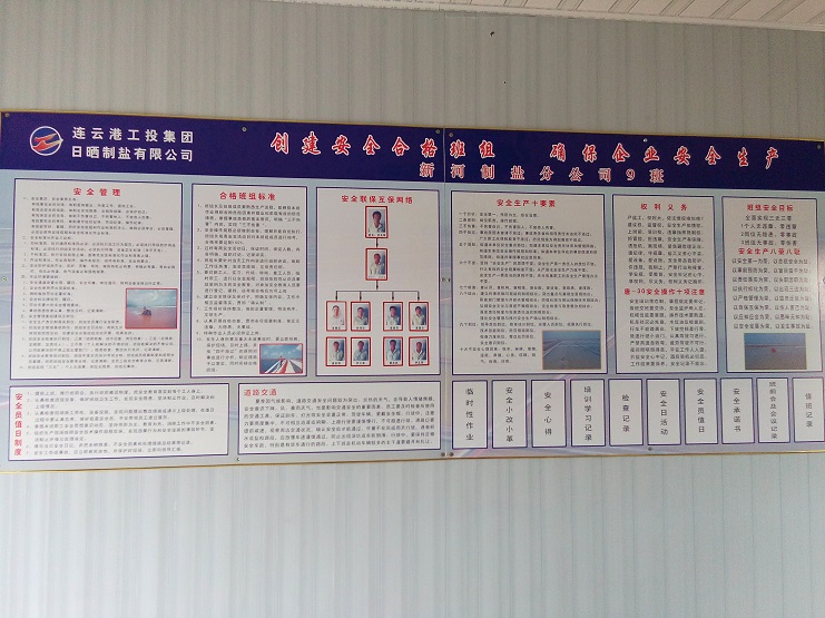 10月21日上午,连云港工投安博(中国)官方安全部胥广会总监一行三人,在灌西投资公司运营部李长军部长的陪同下,对新河制盐分公司9班安全软硬件台账,班组设备安全,班组制盐工、扒盐工、維护工岗位职责,各种操作规程等进行初步检查验收。胥总监认为,9班班组安全硬件设施到位,各种岗位操作规程齐全,不同岗位职责明确,是我到基层单位检查班组安全硬件设施想像不到的好。他同时指出班组安全台账还需进一步增补。他们一行3人,当看到新河9班班组生产工具、劳保护具,值班室生活设施,上下班佩戴的头盔,摆放整齐划一时,满意地说,就这样好,有安全合格班组的模样。(新河制盐)