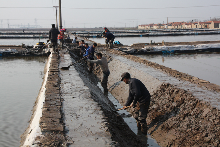 2月27日上午,位于灌西实业公司的海水制卤滩上,一派火热景象,参加劳动的工人达50余人,只见工人们有的泼水,有的铲泥,大家分工协作,正在进行捞沟做埝。据了解,为了加快滩场文明建设进度,推进海水盐基地建设,灌西实业公司瞄准全年提制海水卤5万方的目标任务,集中人力、机械对塑池区的所有沟道进行全面修整亮化,掀起捞沟做埝大会战。连日来,在日晒制盐埒南、新河公司的广大员工共同努力下,已经捞沟做埝3000余米,接下来,还将用土工布对格埝进行固化。(季兴胜)