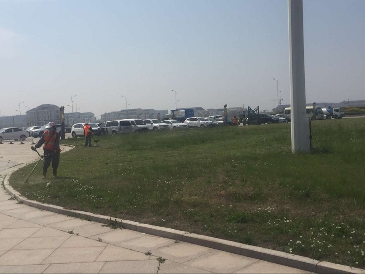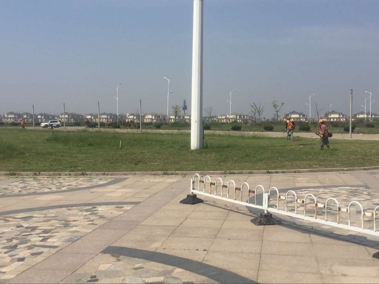 4月24日上午,南翼公司绿化组长张东贵带领几名绿化工人,对临港产业区管委会门前草坪内的杂草和垃圾进行清理,有效地改善了环境卫生,进一步美化了环境。(王薇)