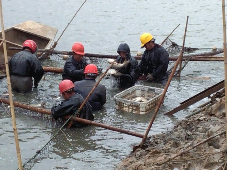今年来,西旺水产公司认真组织各养殖户做好淡水鱼的养殖生产。从年前的成品鱼起捕到进入市场,从整理池塘到订购鱼苗,从供水修路到供应饲料,从放养鱼苗到日常喂料,从安全管理到常规生产记录等等,各个程序和环节安排得有条不紊。目前,淡水养殖步入良性循环轨道,继去年养殖形势发生好转,今年的有望再次获得大丰收。图为养殖工人正忙着成品鱼的起捕。(西旺宣)