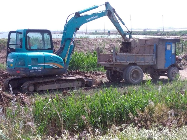 一直以来,西旺水产公司把做好养殖服务工作作为单位重要工作的组织部分。从供水供电、道路畅通、疏浚河道、饲料供应、技术咨询等方面,都能做得较为到位,受到区域内的养殖户的高度赞扬。图为公司正组织机械运土对漏水渠道进行加固堵漏。(西旺宣)