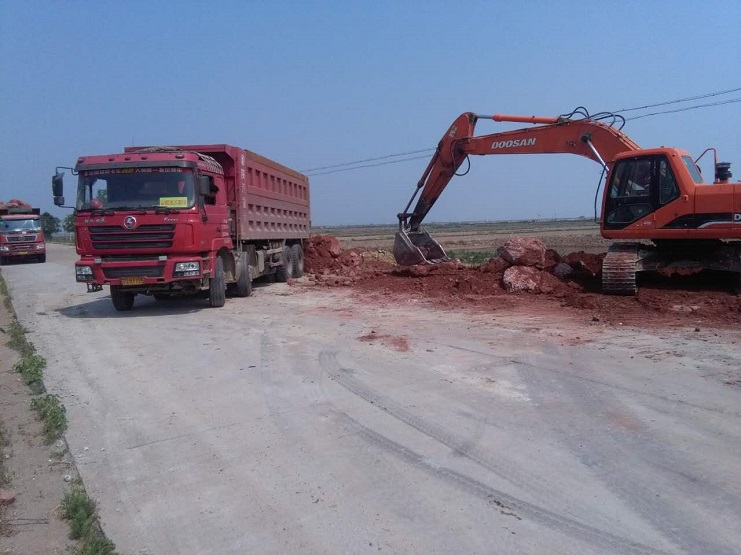 坐落在西旺水产公司农田区域内的其中的8个风力发电机建设项目,经过公司相关人员的协调和建设方人员的共同努力,项目建设的各项工作进展顺利。日前,项目建设已正式进入项目施工环节。图为运载车辆进行铺建便道施工工程中(西旺宣)
