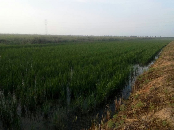 实业公司农业分公司严格做好水稻田间管理工作。针对季节气候的变化,及时组织人员对埒南大阜二圩片区试种稻田进行除草、施肥、洒药,为水稻营造良好的生长环境。(实业公司)