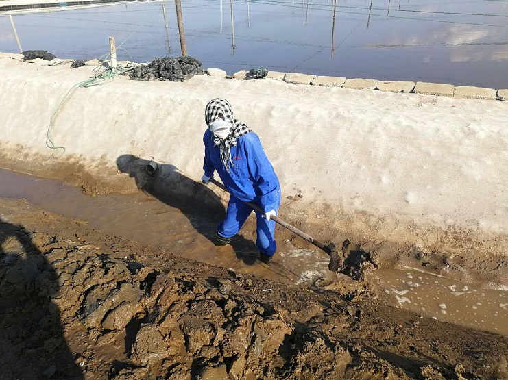 近日,继实业公司海盐基地三个班组整治、清除大米草之后,分公司各个班组现进入捞沟做埝阶段工作。 海盐基地三个班组,每班集中人力从门面沟开始做起,依次咸头、甜头。走进滩头,大家手握铁锨有挖泥的、踩泥的、浇水的、抹平的,干得热火朝天。下步将进入和格压格阶段工作。(实业公司)