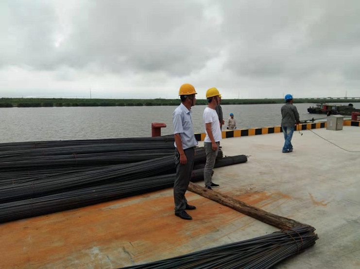 天空飘起了零星小雨,宵洋物流公司总经理沈志兵站在雨中,亲自指挥工人安装吊具,固定钢丝绳。因为这种货物安博网页版以前没有装卸过,所以组装起来比较有难度。在现场,沈志兵同志多次强调,一定要注意安全,检查钢丝绳的接头是否牢固,一定要保证安全。同事们在小雨中,在沈总的指挥下有条不紊的安装着吊具,不大一会只见长长的管桩从货船里腾空而起。