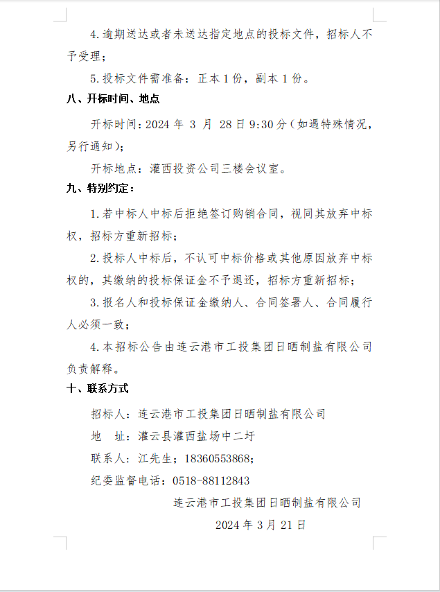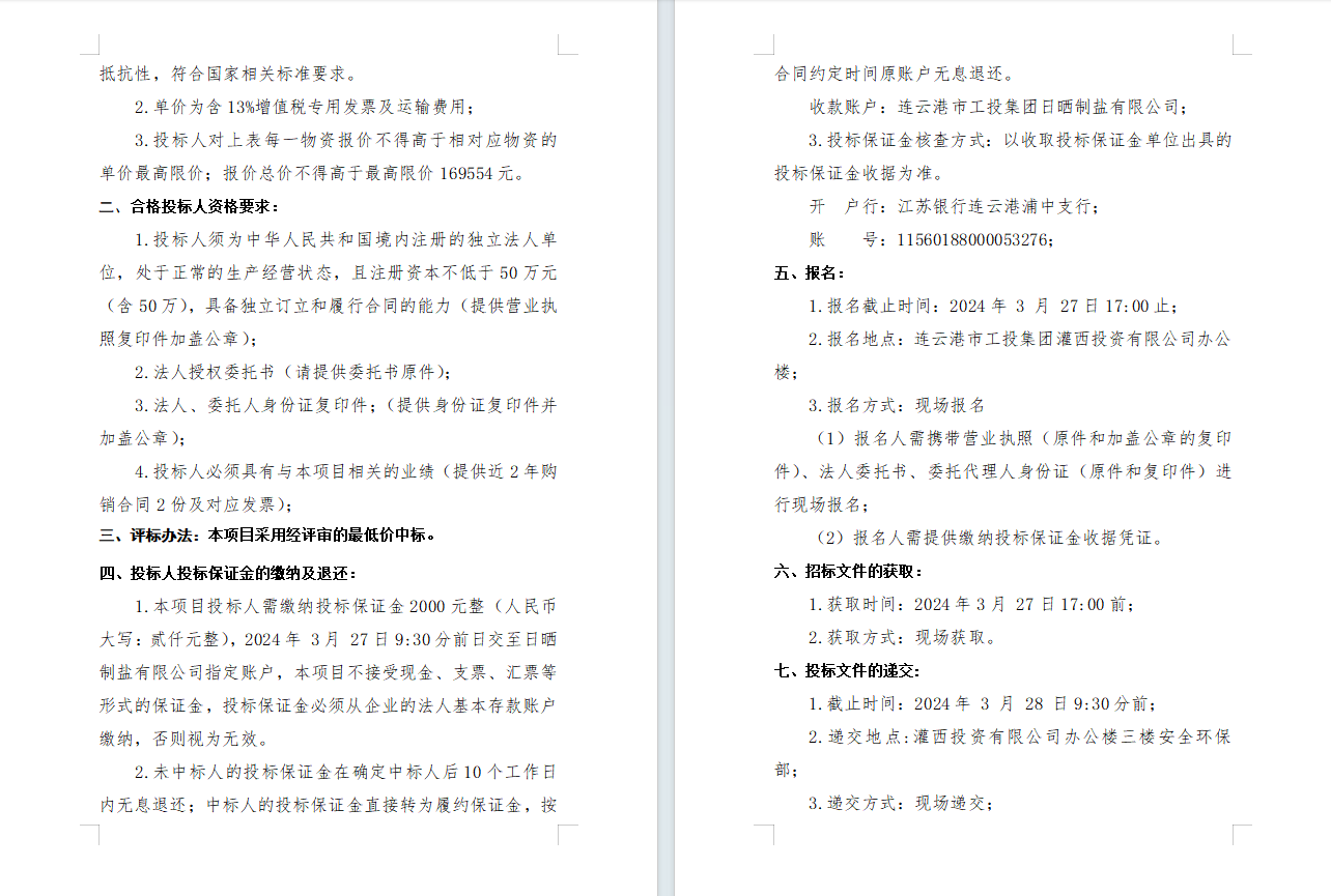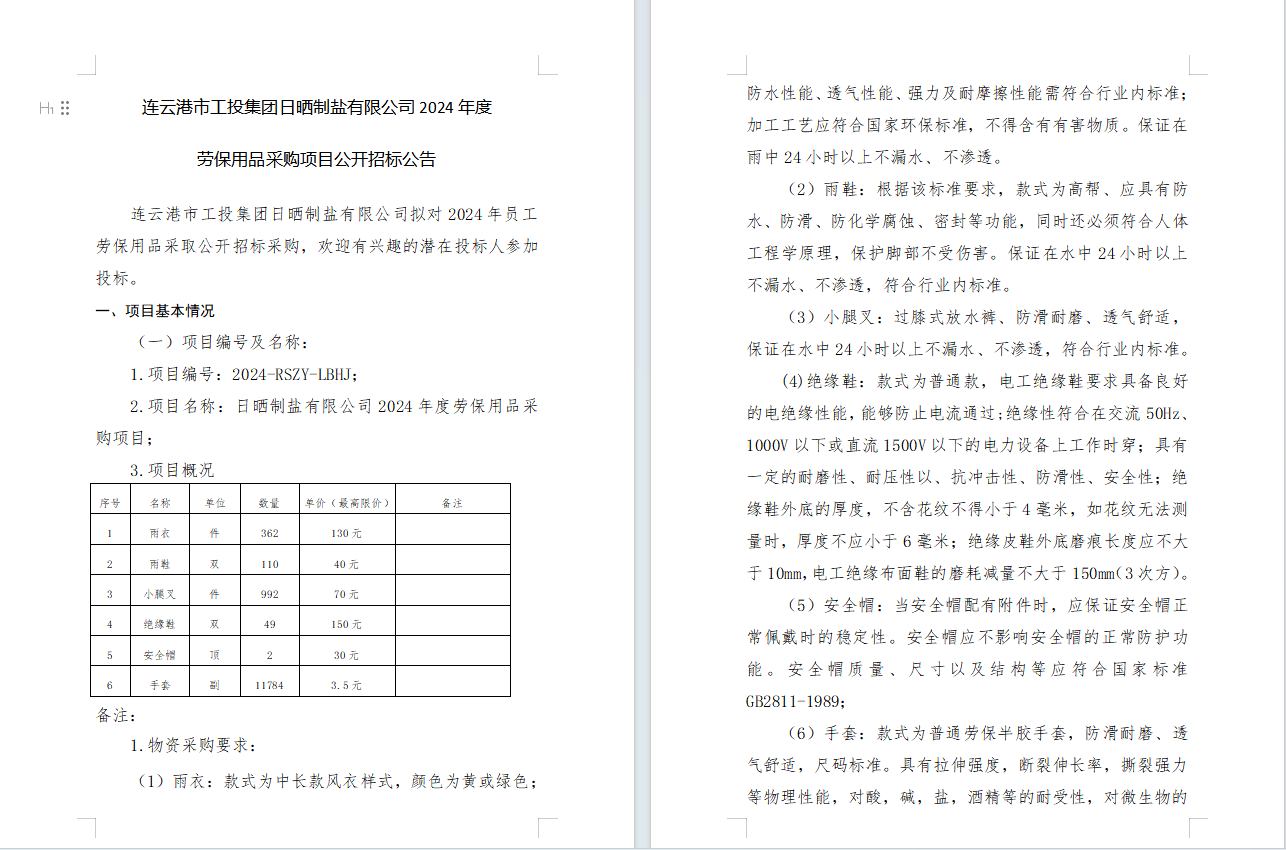 连云港市工投安博(中国)官方日晒制盐有限公司2024年度劳保用品采购项目公开招标公告