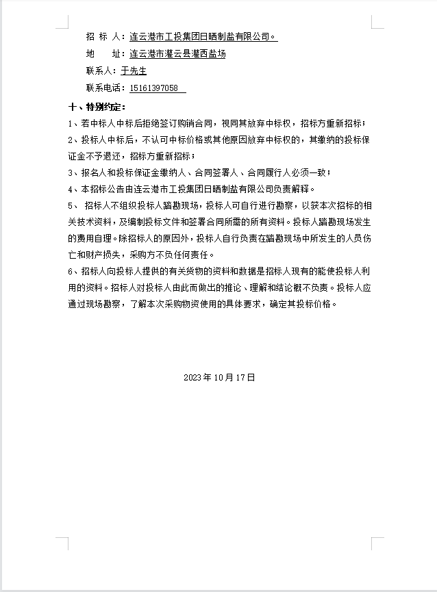 连云港市工投安博(中国)官方日晒制盐有限公司玻璃纤维杆招标公告