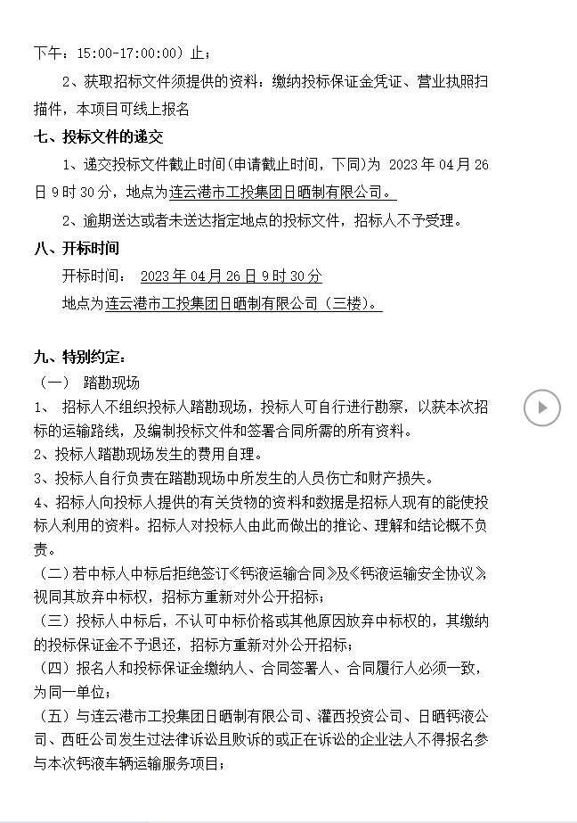 连云港市工投安博(中国)官方日晒制盐有限公司钙液运输招标公告