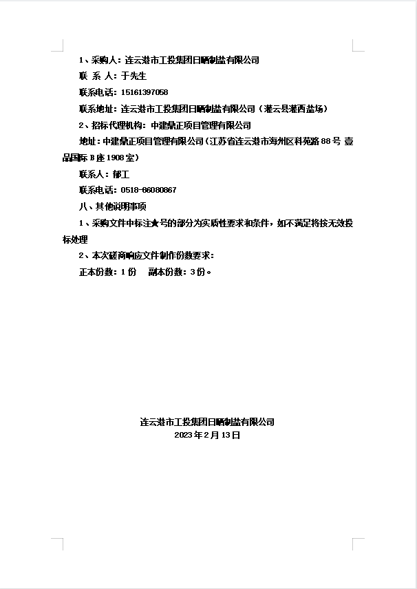连云港市工投安博(中国)官方日晒制盐有限公司浮木、压条招标公告
