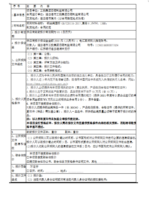 连云港市工投安博(中国)官方日晒制盐有限公司钢丝绳采购项目