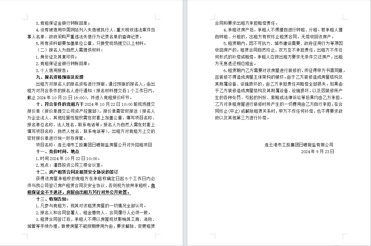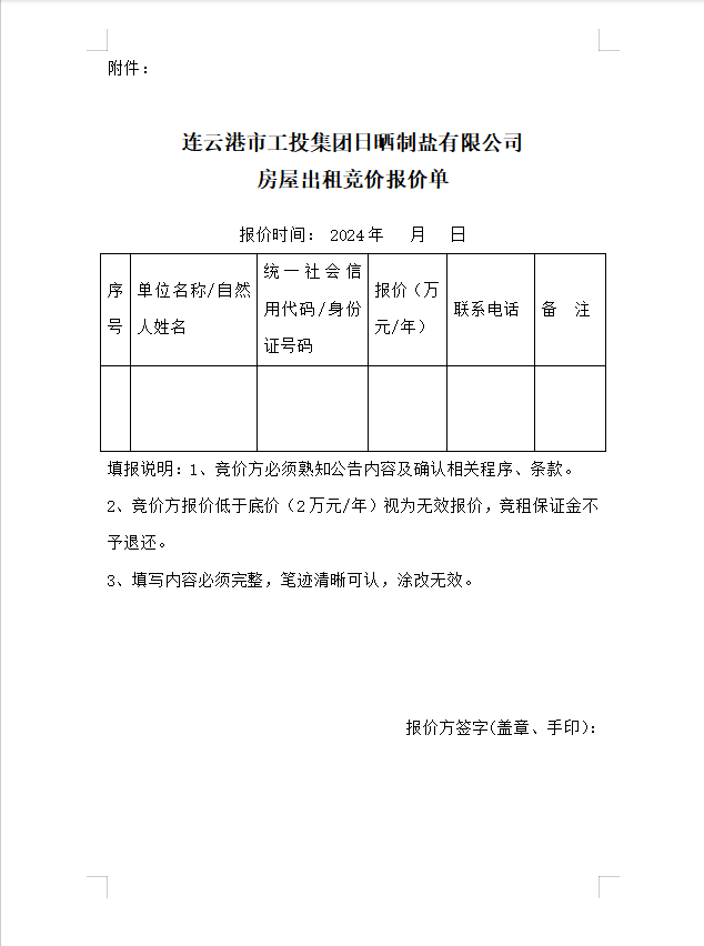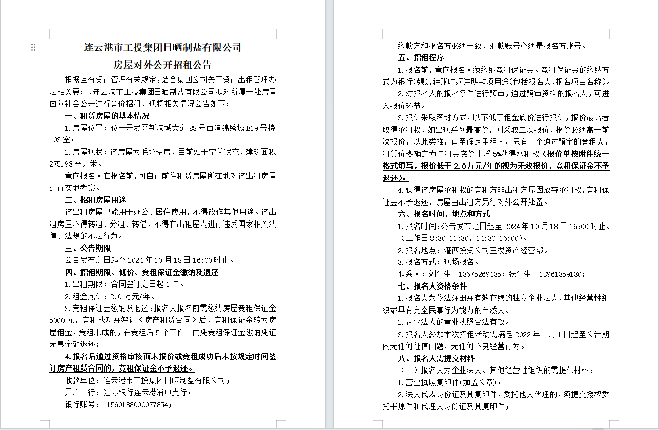 连云港市工投安博(中国)官方日晒制盐有限公司 房屋对外公开招租公告