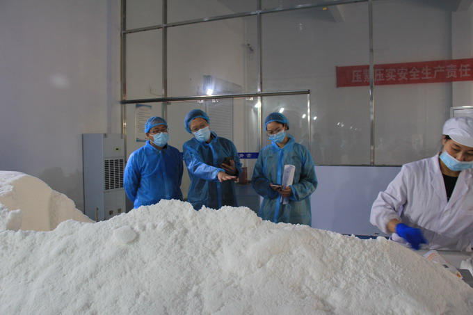 检查组一行查看了公司相关台账资料,实地查看了加工盐车间、包装盐车间、雪花盐车间、化验室等;检查组一行对我公司食品安全管理工作给予肯定,并对下一步隐患排查整改工作提出了意见和建议。