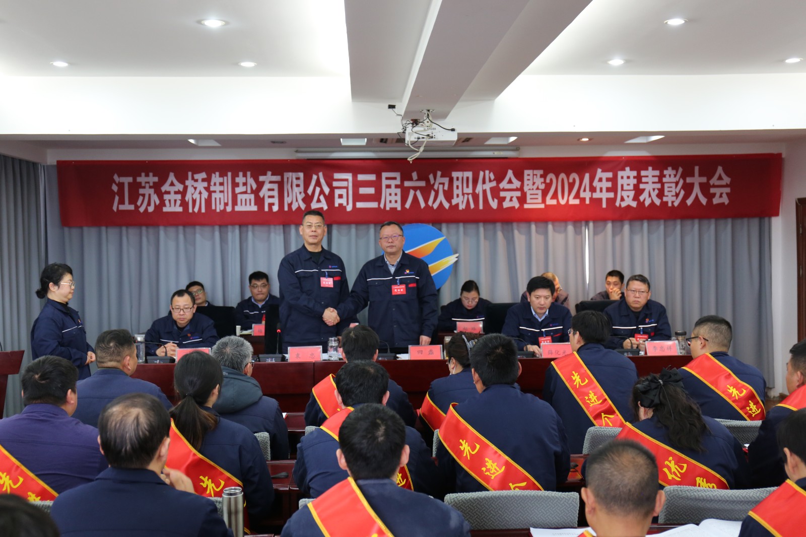 会上签订了《2025年度集体合同》,递交了《2025年度经营认标责任书》,加工盐车间、包装盐车间、销售部负责人作了表态发言,对“大干一百天,冲刺双二零”劳动竞赛先进集体、先进班组、先进个人,2024年度劳动竞赛先进集体、示范班组、优秀员工进行了表彰。(金盐宣)