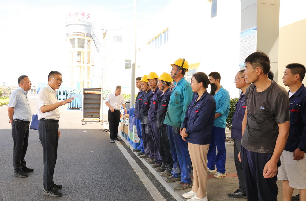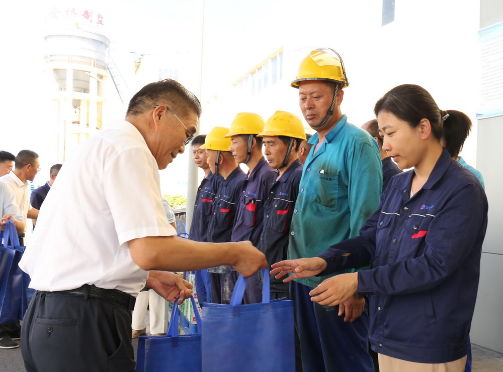 7月8日,安博(中国)官方公司副总经理刘承志来金桥制盐公司“送清凉”,走访慰问坚守在高温岗位的一线职工。 刘承志叮嘱职工要增强高温作业时的自我防护意识,注意劳逸结合,预防中暑,做到安全生产。要求公司领导班子切实保障广大职工的生命安全和身体健康,想方设法改善生产一线岗位高温作业环境,合理安排好作息时间,把各项安全防护措施落实到位。(张 飞)