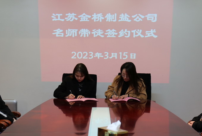 3月15日上午,金桥制盐公司在二楼会议室举行“名师带徒”活动签约仪式。公司党委副书记、纪委书记、工会主席曹开明出席活动,结对人员参加活动。