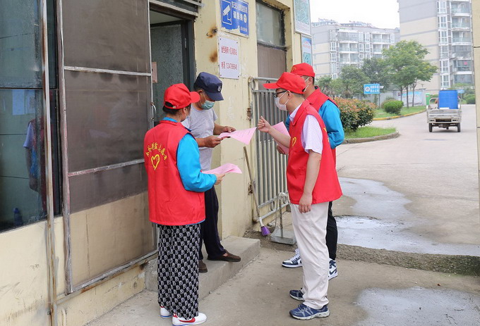 组织志愿者到板桥社区内的饭店、居民区等地分发《疫情防控倡议书》和疫情防控知识手册