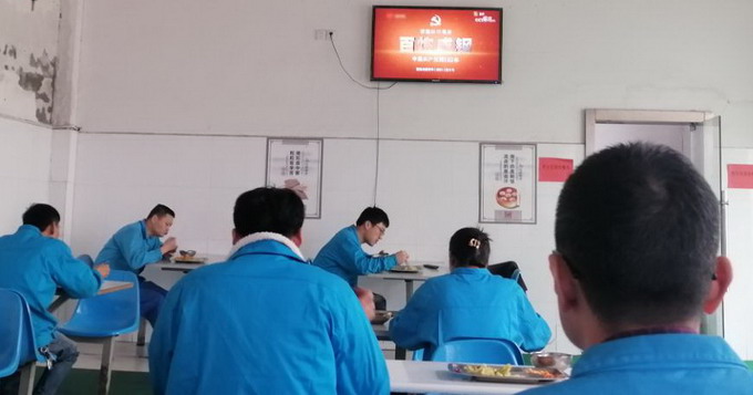 餐厅电视循环播放《百炼成钢:中国共产党的100年》《孤岛32年》及红色电影等学习教育视频