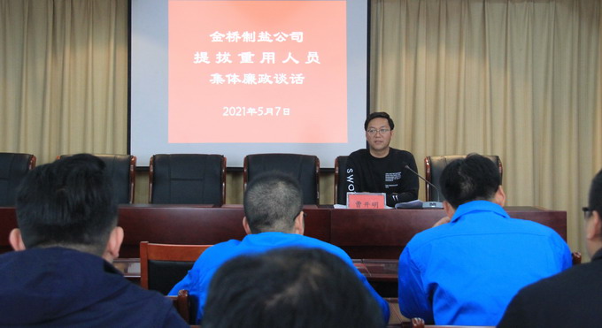 党委副书记、工会主席曹开明主持会议。他首先与参会人员一起学习了《中国共产党纪律处分条例》,希望大家增强组织纪律观念,自觉做到遵守党的纪律不动摇,执行党的纪律不走样,时刻用党的纪律严格要求和约束自己,规范自己的一言一行;他对获得提拔重用人员的工作给予充分肯定,并提出三点要求:一要站稳立场讲政治。要对党绝对忠诚,坚守政治信仰,树牢“四个意识”,坚定“四个自信”,坚决做到“两个维护”,自觉做到“五个必须”,严格防止“七个有之”。二要清正廉洁守纪律。要严守“六大纪律”,主动接受监督,习惯在“放大镜”下用权,在“聚光灯”下工作和生活。三要“一岗双责”敢担当。要求大家到新岗位忠实履行职责使命。一把手既要抓好主要业务,又要抓好党风廉政建设,负起主体责任,副职承担自己的分管责任。希望大家不忘初心、牢记使命,严守党纪国法,以良好的人品官德、纯洁的党性修养、优异的工作成绩,回报组织的重托和希望,在各自的岗位上更加出彩,为金桥制盐公司的发展作出更大的贡献。(金宣、金纪)