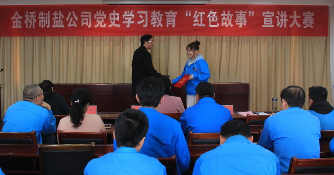 4月29日上午,我公司党委在三楼会议室举办党史学习教育“红色故事”宣讲大赛。公司各支部11名选手登上讲台,以激情澎湃、铿锵有力的语言,大方得体的举止,讴歌了中国共产党领导人民进行革命斗争的光辉历史,演绎了革命先烈爱党爱国的浓郁情怀,深刻诠释了“红色故事”的丰富内涵、内在价值和深远意义,感染了在场的评委和观众。经过角逐,来自机关支部的于静荣获一等奖,配送中心支部周玲玲、机关支部的沈海琴获得二等奖,机关支部张飞、包装盐车间支部潘东昇、加工盐车间支部祝叶青分获三等奖。