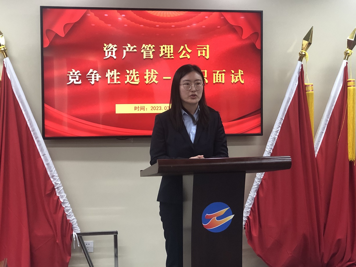 资产管理公司制定了《“竞争性选拔”实施方案》。前期通过自愿报名、宣传动员、资格审查等环节,共有7名候选人进入述职面试环节。面试采取“演讲+答辩”的方式进行,既考核竞聘者的语言表达、临场应变和逻辑思维等能力,又检验竞聘者的业务水平和岗位匹配性。竞聘现场,应聘人员通过抽签轮流进行面试,展示各自风采,气氛紧张而又激烈。评委组根据竞聘者台上的演讲内容及答辩情况现场打分。