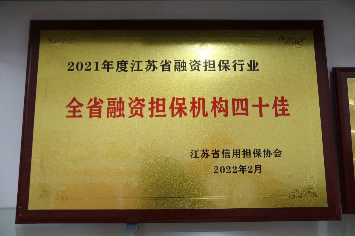 被省担保协会评为“江苏省2021年度融资性担保机构四十佳”。