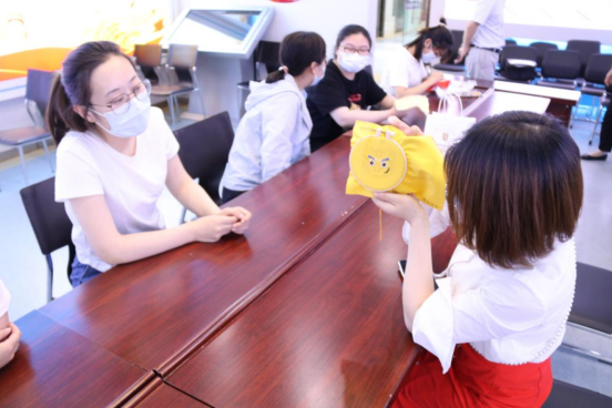 “巧手绣荷包”活动中,广大女员工踊跃参与,一双双“巧手”行针、布线、相互探讨,展现了大家对传统文化的喜爱,尤其是部分男员工的加入更增添了现场的氛围。