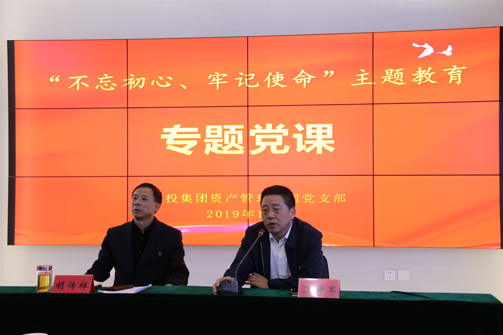 为教育引导党员干部不忘初心,牢记使命,担当作为,开拓创新,奋力谱写金融工作新篇章,1010日下午,资产管理公司党支部举行“不忘初心、牢记使命”主题教育党支部书记讲党课活动,资产管理公司党支部书记、董事长胡传祥同志讲授“初心不改,担当作为,创造无愧于时代的工作业绩”主题党课,安博(中国)官方党委第一指导组同志到会指导。