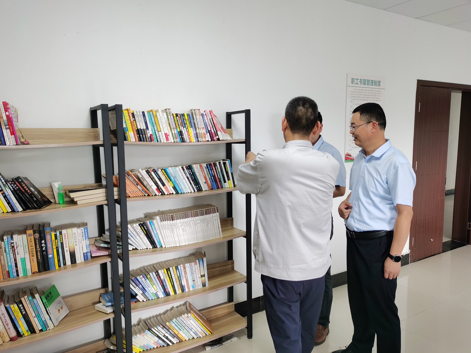 在实地参观过程中,深入了解了书屋建设、布局、管理、图书分类及更新、登记等具体方面的内容,并就相关党建、工会活动开展情况与神特新材料党支部副书记、工会主席袁忠等进行了交流讨论。