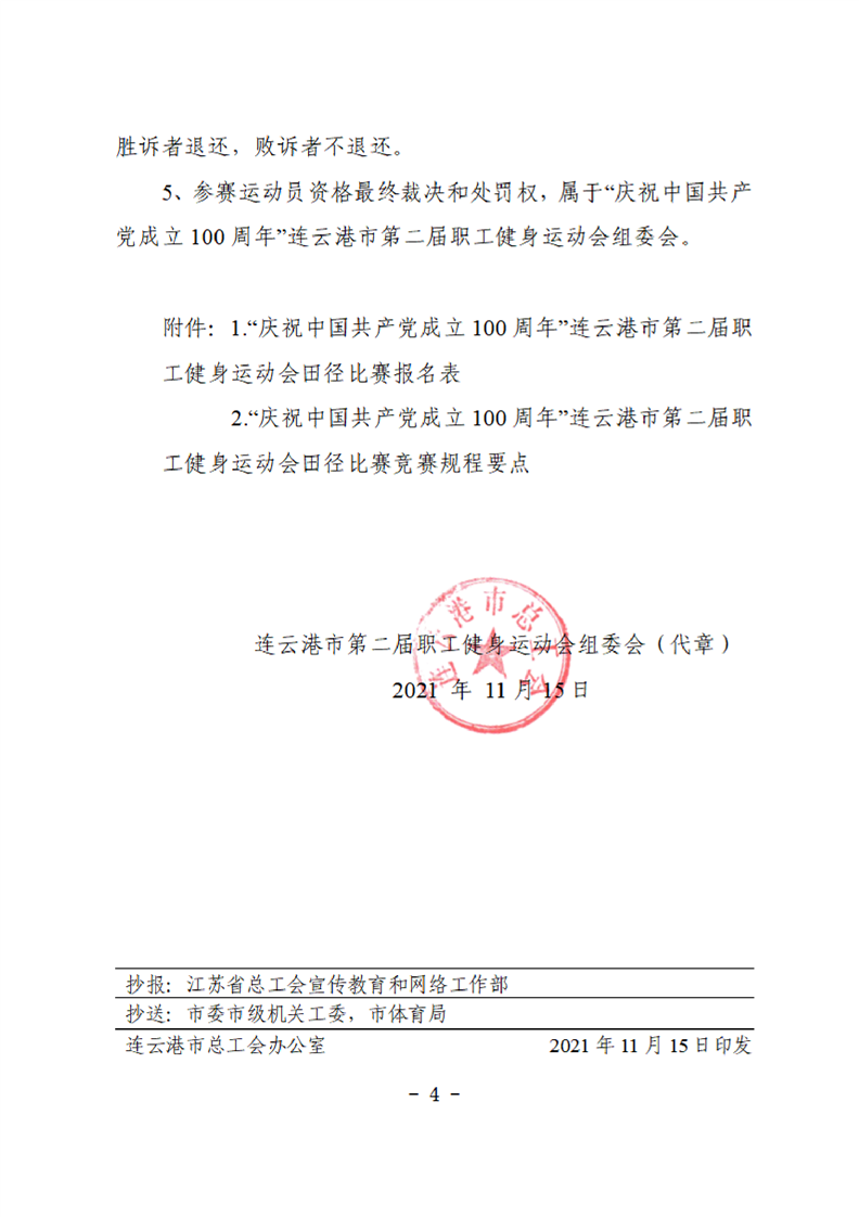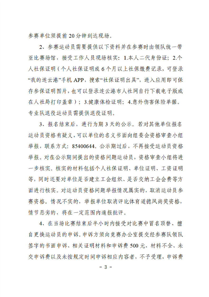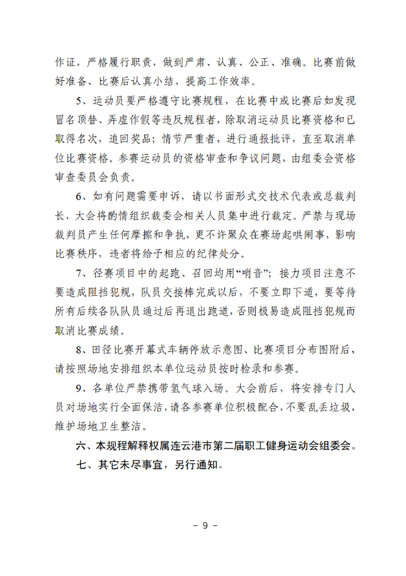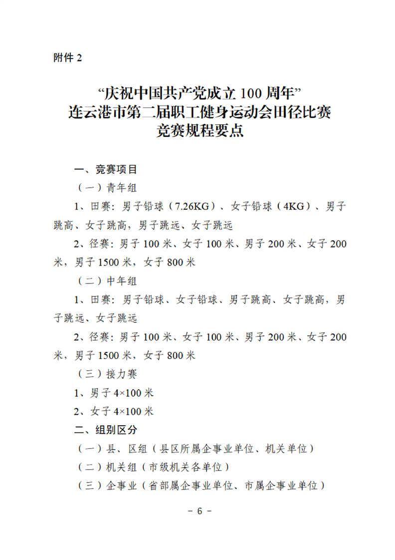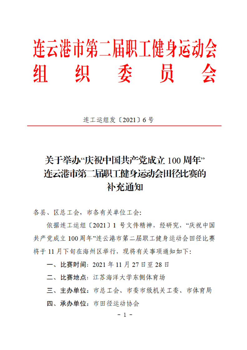 连云港市第二届职工健身运动会田径比赛的补充通知