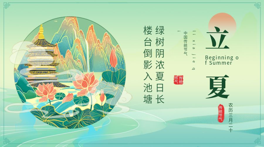 草木芳舒间,风华渐浓时,繁花未落尽,荠麦正青青。春生夏长,万物自此走向葳蕤繁茂。夏季有很多别称,如朱明、朱夏、长赢。“朱明”意为“气赤而光明”。“长赢”即“长盈”,盈有满、增长之意,意指草木长盈者为夏。总而言之,关于夏的联想,大多都离不开旺盛、光耀、饱满、充盈这一类感觉。此时春夏初逢,人间无处不是风景,从风到云,从花到树,每一处都令人欣喜。“孟夏之月,天地始交,万物并秀”,春天发芽生长的植物,到立夏时节已经长大,愈加葱郁繁盛。立夏是一个重要的转折点,其一是气温上的变化,炎热的季节即将到来。其二是农事节奏的变化,“乡村四月闲人少,才了蚕桑又插田”。并且,夏收、夏种、夏管——“三夏”大忙时节也已不远了。