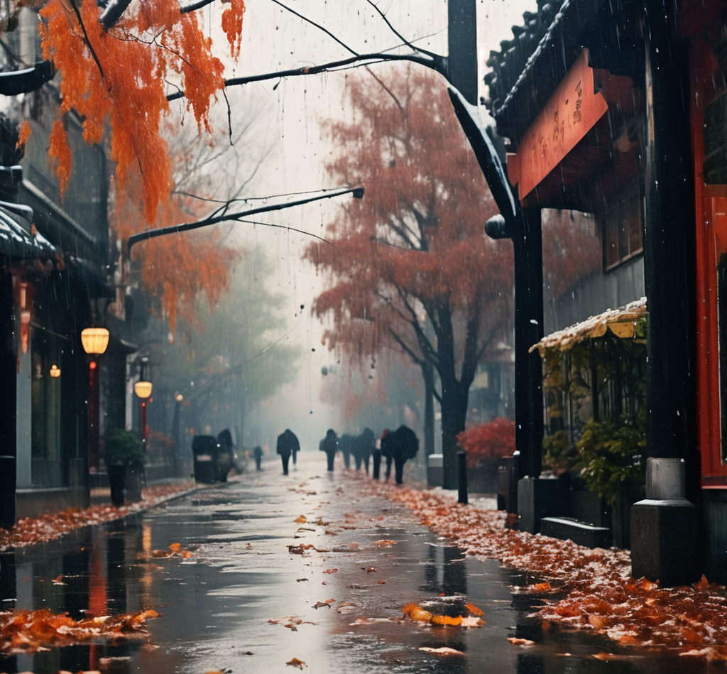 雨滴细密确冰冷而清澈,吹到脸上、手上,冷得刺骨。我连忙把衣服裹得更紧些,但这寒冷似乎已经渗透到了骨子里。路上的人们行色匆匆,似乎都想尽快逃离这场雨。
