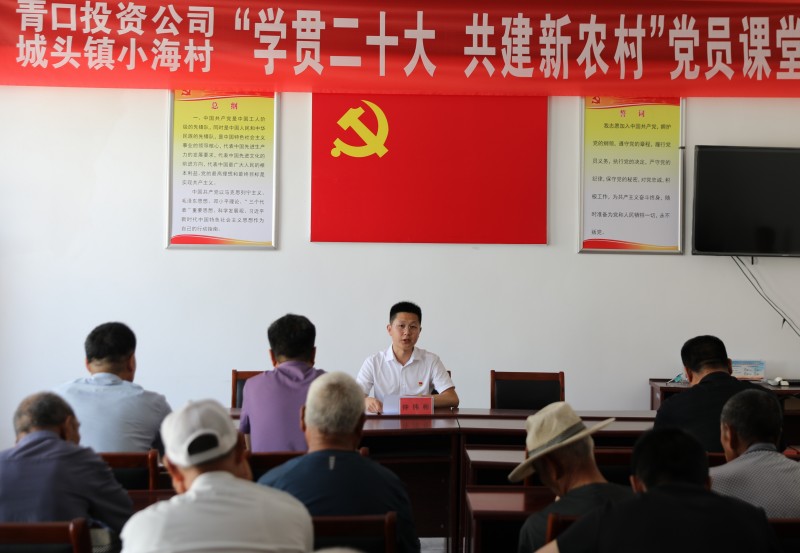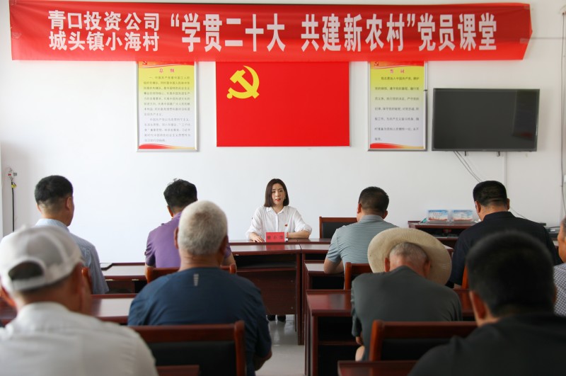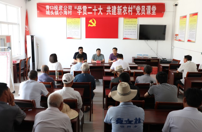 为推动党的二十大精神在乡村落地生根,6月28日上午,青口投资公司、城头镇小海村联合开展“学贯二十大 共建新农村”党员课堂,由公司机关优秀党务干部组成的二十大精神宣讲队,走进结对共建的赣榆区城头镇小海村开展集中式、通俗化宣讲。公司党委副书记、工会主席梁永,城头镇副镇长王延光,城头镇小海村支部书记徐坤参加活动。