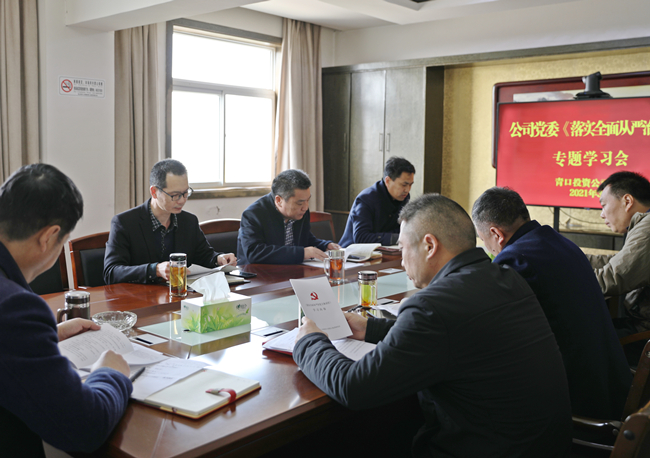 4月12日,青口投资公司党委召开会议专题学习《落实全面从严治党主体责任》清单,领导班子全体成员参加会议。