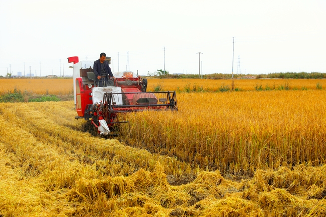 万亩盐田开镰收割 稻谷飘香喜迎丰收