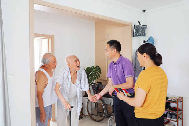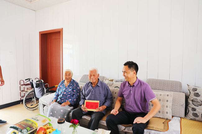 梁永先后来到抗战老干部吴建兴、张华三家中,一进门就热情地上前与老人握手。看到94岁和96岁高龄的两位老人精神矍铄,梁永非常欣慰,关切询问他们的身体状况和生活情况,聆听他们回忆战争年代的往事,送上公司党委的关怀,致以崇高敬意和诚挚问候。 (青宣)