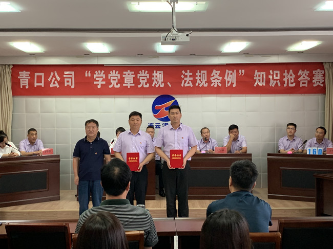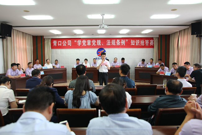 推动党员干部进一步掌握基本标准,增强党的意识、党员意识、纪律意识,更好地坚守初心、践行使命623日上午,青口公司举办“学党章党规、法规条例”知识抢答赛活动。来自公司8个支部的24名选手参加了比赛。公司党委班子成员出席了活动。机关全体管理人员、各单位党政工负责人到场观看。